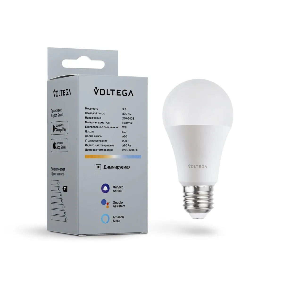 Лампа светодиодная диммируемая Voltega E27 5W 2700К матовая VG-A60E27cct-WIFI-9W 2429 купить в Егорьевске по лучшей цене