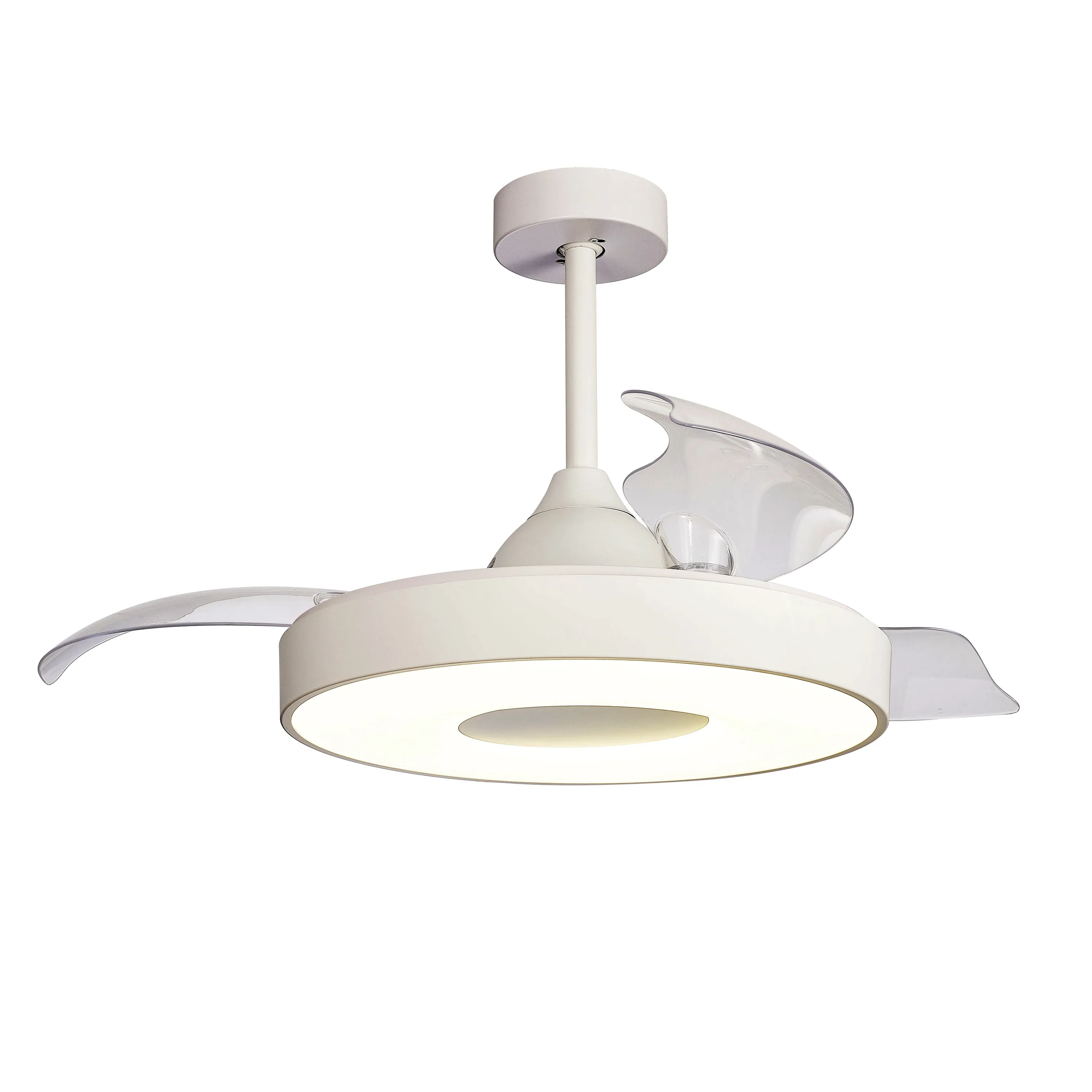 С помощью пульта пользователь может управлять яркостью и цветовой температурой освещения, скоростью вращения вентилятора, а также открывать или закрывать лопасти.
